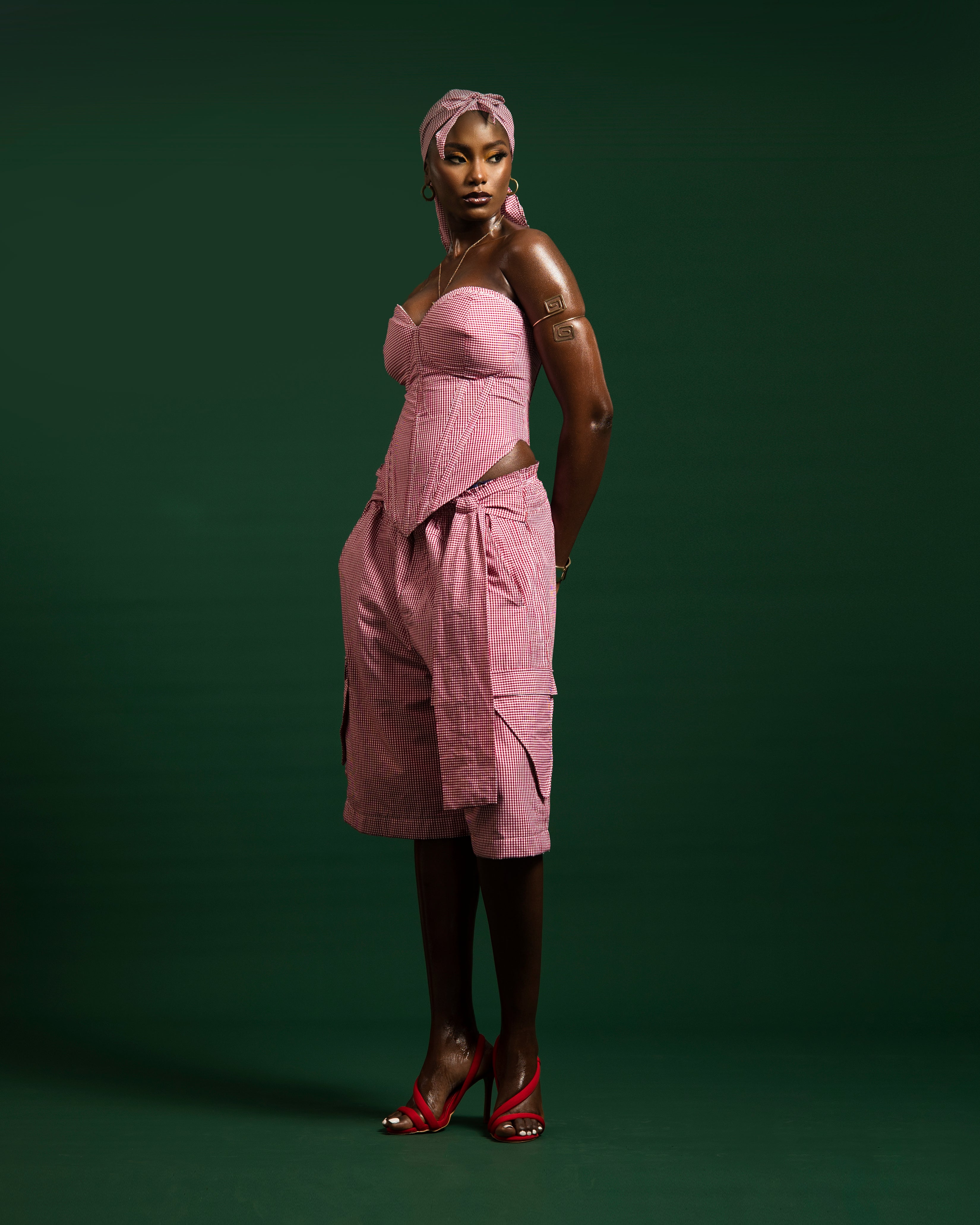A two-piece look that blends structure with softness red gingham done our own way. A fitted, sculpted corset, wide cargo shorts, and the double cup feature are the best of both worlds.